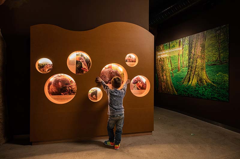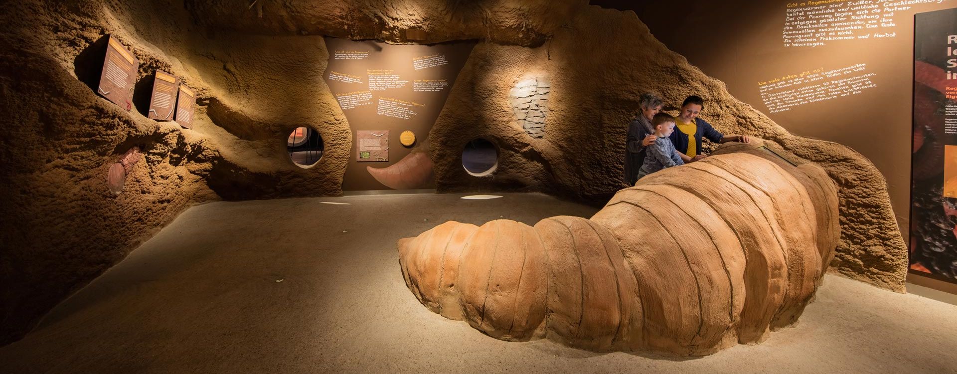 Begeben Sie sich auf Augenhöhe mit Regenwurm, Maulwurf und Co und durchschreiten Sie als Mensch im Mini-Format die Wurzelhöhle. Interaktive Elemente und Modelle zum Anfassen informieren anschaulich und kindgerecht über den Lebensraum um und unter den Baumwurzeln. Modelle zum Klettern und eine Spielhöhle mit Rutsche sorgen besonders bei den Kleinen für viel Spaß.