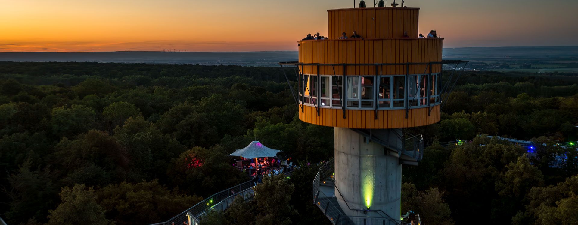 Der Höhengenuss bietet in einem einzigartigen Ambiente eine Vielfalt erlesener Köstlichkeiten, musikalische Darbietungen und einen beeindruckenden Blick über den abendlichen Nationalpark Hainich.